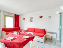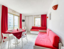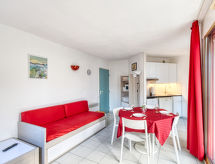 2-Zimmer-Wohnung 42 m2 im 1. Stock. Wohn-/Esszimmer mit 1 Bett (80 cm, Länge 190 cm), 1 Ausziehbett (2 x 80 cm, Länge 190 cm), TV und elektrischem Rollladen. Ausgang zum Balkon. 1 Zimmer mit 1 franz. Bett (140 cm), Dusche/WC. Offene Küche (Geschirrspüler, 2 Induktionskochplatten, Mikrowelle, elektrische Kaffeemaschine). Balkonmöbel. Zur Verfügung: Internet (Wireless LAN, gratis). Parkplatz Nr. 7072 (überdacht), Höhe 190 cm, Breite 196 cm. Bitte beachten: Wohnung auf Strassenseite. Rauchmelder. Residenz. Objekt mit Aufzug. Es gibt ein Geschirrspüler. Es hat ein überdachter Parkplatz. Ein Pool ist vorhanden.- Charakteristik des Mietobjekts