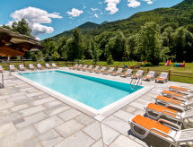 Residenz "Torinetto", 1'000 m.ü.M., auf 4 Stockwerken. 18 Wohnungen in der Residenz. Im Ortsteil Calchesio, 1 km vom Zentrum von Sampeyre, am Ortsrand, 12 km vom Zentrum von Casteldelfino, 35 km vom Zentrum von Saluzzo, 50 m vom Fluss. Zur Mitbenutzung: Grundstück 5'000 m2, Garten (nicht eingezäunt) mit Rasen, Wiese, Liegewiese, Schwimmbad eingezäunt (12 x 5 m, 100 - 170 cm tief, saisonale Verfügbarkeit: 01.Mai. - 30.Sep., extra). Dusche/WC im Poolbereich, Aussendusche, Boccia, Terrasse, Gartenmöbel, Grill, Kinderspielplatz. In der Anlage: Empfang, Restaurant, Bar, Aufenthaltsraum, Wireless LAN, Fitnessraum, Einstellraum für Fahrräder, Waschmaschine (zur Mitbenutzung, extra), Heizung nur verfügbar von 15.10. bis 15.04.. Frühstück und Halbpension möglich (extra). Parkplatz. Supermarkt 1.5 km, Bahnstation "Costigliole di Saluzzo" 35 km. Die Gemeinschaftseinrichtungen befinden sich im Hauptgebäude mit weiteren 40 Hotelzimmern. Der Pool ist ca. 50m von «La Borgata» und ca. 150m von «Casa del Ponte» entfernt. WLAN nur bei der Rezeption. Gelegenheit für Fitness sind vorhanden.Interior