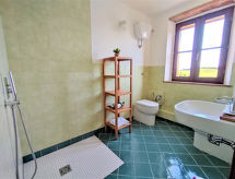 Landw. Ferienbetrieb, im Herzen der Maremma Toscana gelegen, umgeben von Olivenhainen und Weinreben, 35 km von Castiglion della Pescaia und 70 km von Monte Amiata entfernt. Entstanden aus einem rustikalen Steinhaus und in zwei unabhängige Landhäuser unterteilt. Mit zwei wunderschönen Privatterrassen und ausgestatteten Gartenpavillons mit Hängematten. Ideal für erholsame Ferien. Pizza- und Brotbackofen aus Mauerwerk. Das Schwimmbad befindet sich wenige Meter vor dem Haus, ideal für Eltern die gerne ihren Kindern beim Baden zusehen möchten. Im Gut befindet sich auch eine von einem Priester eingeweihte Kapelle. In der Umgebung befinden sich zahlreiche landschaftliche und kulturelle Sehenswürdigkeiten: so beispielsweise die Grabstätten des etruskischen Städtchens Roselle (in 15 km Entfernung), der Naturpark Uccellina (in 25 km Entfernung), die Thermalbäder von Saturnia (in 60 km Entfernung). Florenz, 130 km. Siena, 60 km. Rom, 180 km. Gemütlicher, rustikaler Landsitz "La Casetta", auf 2 Stockwerken, renoviert, umgeben von Weinbergen. 12 km vom Zentrum von Grosseto, 12 km vom Zentrum von Campagnatico, 18 km vom Zentrum von Roccastrada, ruhige, sonnige Lage auf einem Hügel, 25 km vom Meer, im Grünen. Zur Mitbenutzung: Grundstück 5 ha. Zur Alleinbenutzung: Garten, Obstgarten, Schwimmbad (8 x 4 m, 140 cm tief, saisonale Verfügbarkeit: 30.Apr. - 30.Okt.). Pergola, Terrasse, Gartenmöbel, Grill. Im Hause: Internetzugang, Sonnenterrasse, Heizung nur verfügbar von 01.11. bis 15.04.. Zufahrt (1 km Naturweg). Parkplatz (für 4 Autos, überdacht) beim Haus. Einkaufsgeschäft 6 km, Restaurant 3 km, Sandstrand 25 km, Thermalbad "Saturnia" 60 km. Golfplatz 45 km, Tennis 12 km, Reitstall 6 km. Nahe gelegene Sehenswürdigkeiten: Grosseto 12 km, Roselle 15 km, Parco dell'Uccellina 25 km, Castiglione della Pescaia 35 km, Siena 60 km. Ab Hof Verkauf von bäuerlichen Produkten.Interior