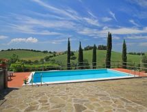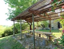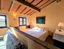 10-Zimmer-Haus 200 m2 auf 2 Stockwerken. Renoviert, rustikal und geschmackvoll eingerichtet: offenes Wohnzimmer mit Esstisch, TV und Klimaanlage. Ausgang zur Terrasse, zum Schwimmbad. 1 Zimmer mit 2 Betten. 1 Doppelzimmer. 1 Zimmer mit 2 Betten und Klimaanlage. Kleines Wohnzimmer. Esszimmer. Kochnische (Backofen, Geschirrspüler, Tiefkühler, elektrische Kaffeemaschine). Dusche/WC, Dusche/Bidet/WC. Obergeschoss: offenes Wohnzimmer mit Panoramafenster mit 1 Diwanbett. 1 offenes Doppelzimmer. 2 Doppelzimmer, jedes Zimmer mit Klimaanlage. Dusche/WC, Dusche/Bidet/WC. Grosse Terrasse, Laube. Terrassenmöbel, Gartengrill (mobil), Liegestühle. Sehr schöne Panoramasicht auf die Landschaft. Zur Verfügung: Waschmaschine, Babybett. Internet (Wireless LAN, gratis). IPod docking station. Der erste Stock ist ein grosser offener Raum, welcher aus einem Hauptschlafzimmer mit einem Schlafsofa und einem eigenen Badezimmer besteht. Es gibt einen privaten Aussenraum, welcher vom Erdgeschoss und ersten Stock erreicht werden kann. Das Haus ist auch mit einem überdachten Parkplatz ausgestattet. Ein privater Pool ist verfügbar.- Ausstattung