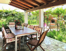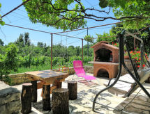 4-Zimmer-Doppelhaushälfte 90 m2 auf 2 Stockwerken. Wohn-/Esszimmer mit 1 Doppeldiwanbett (140 cm, Länge 200 cm), offenem Kamin (nur Deko), Sat-TV und Klimaanlage. Ausgang zur Terrasse. Offene Küche (1 Kochplatte, Backofen, Geschirrspüler, Gasherd, 3 Flammen, Toaster, Wasserkocher, Mikrowelle, Tiefkühler, elektrische Kaffeemaschine). Dusche/WC. Obergeschoss: Eingang mit Klimaanlage. 1 Zimmer mit 1 franz. Bett (160 cm, Länge 200 cm). 1 Zimmer mit 1 franz. Bett (140 cm, Länge 200 cm). Ausgang zum Balkon. 1 Zimmer mit 2 Betten. Dusche/WC. Balkon, Terrasse 23 m2 teilweise überdacht. Terrassenmöbel, Balkonmöbel, Gartengrill. Zur Verfügung: Kinderhochstuhl, Babybett. Internet (Wireless LAN, gratis). Bitte beachten: Nichtraucher-Haus. Maximal 2 kleine Haustiere/Hunde erlaubt. Max. Belegung: 6 Erwachsene, 2 Kinder bis 12 Jahre. Das Haus ist auch mit einem Balkon ausgestattet. Das Haus ist auch mit einem Pool ausgestattet. Das Haus ist auch mit einem privaten Pool ausgestattet. Es gibt ein Ofen.- Ausstattung