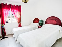 "La Giralda", 3-Zimmer-Wohnung im 1. Stock. Hell, zweckmässig eingerichtet: Wohn-/Esszimmer mit Digital-TV, Flachbildschirm, Klimaanlage und Warmluftheizung. Ausgang zur Terrasse. 1 Zimmer mit 1 franz. Bett (150 cm). 1 Zimmer mit 2 Betten (90 cm, Länge 180 cm). Küche (Backofen, 4 Glaskeramikherd Platten, Toaster, Wasserkocher, Mikrowelle, Tiefkühler, elektrische Kaffeemaschine). Dusche/WC. Grosse Terrasse 25 m2. Terrassenmöbel. Sicht auf das Schwimmbad und den Garten. Zur Verfügung: Waschmaschine, Bügeleisen, Kinderhochstuhl, Babybett, Haartrockner. Internet (Wireless LAN, gratis). Bitte beachten: TV nur ES. AT-458578-A Mit eingezäuntem Grundstück. Ferienobjekt samt Garten zum Entspannen. Auch wenn es in der Nacht noch so heiss bleibt, ist es schön, kann man die Klimaanlage einschalten und in einem angenehm temperierten Raumklima schlafen. Es hat ein Pool. Es hat ein Kinderbecken.- Ausstattung