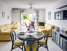 Schönes, gemütliches Appartementhaus "La Giralda". Am Ortsrand, 4 km vom Zentrum von Dénia, ruhige, sonnige Lage, 800 m vom Meer, 800 m vom Strand. Zur Mitbenutzung: gepflegter Garten (eingezäunt) mit Rasen und Blumen, Schwimmbad eckig (15 x 8 m, 180 cm tief, saisonale Verfügbarkeit: 01.Jan. - 31.Dez.). Kinderbecken, Parkplatz. Einkaufsgeschäft, Supermarkt 300 m, Restaurant 50 m, Sandstrand 800 m. Tennis 3 km. Bitte beachten: kein Fahrstuhl vorhanden. Der Besitzer akzeptiert keine Jugendgruppen.Interior