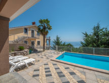 Tuliševica 5 km von Lovran: Dreifamilienhaus "La Mer". Oberhalb von Lovran, im Weiler Tuliševica, 8 km vom Zentrum von Opatija, ruhige, sonnige, erhöhte Lage, 5 km vom Meer, in einer Sackgasse. Zur Mitbenutzung: Grundstück 1'110 m2, Pflanzen, Schwimmbad eckig (6 x 3 m, 110 cm tief, saisonale Verfügbarkeit: 01.Mai. - 01.Okt.). Terrasse (74 m2), Gartenmöbel, Grill. Im Hause: Internetzugang. Einkaufsgeschäft 650 m, Supermarkt 5.5 km, Restaurant 5 km, Steinstrand 5 km, Strandbad 5 km, betonierter Strand 5 km. Jacht-Hafen 7 km, Tennis 5 km. Zur Mitbenutzung:Terrasse 70 m2. Das veranstalten von Feiern ist nicht gestattet.Interior