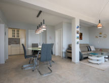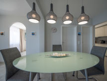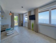 3-Zimmer-Wohnung 75 m2, im Erdgeschoss. Wohn-/Esszimmer mit Sat-TV und Klimaanlage. Ausgang zur Terrasse. 2 Zimmer, jedes Zimmer mit 1 franz. Bett (160 cm, Länge 200 cm). Offene Küche (Backofen, Geschirrspüler, 4 Glaskeramikherd Platten, Wasserkocher, elektrische Kaffeemaschine). Dusche, sep. WC. E-Heizung (extra). Terrasse 45 m2. Terrassenmöbel. Herrliche Panoramasicht auf das Meer. Zur Verfügung: Internet (Wireless LAN, gratis). Parkplatz (1 Auto) beim Haus. Bitte beachten: 2 Haustiere/Hunde erlaubt. Eigener Eingang. Zur Verfügung: Kaffeepadmaschine „Tassimo“ (Kaffeepads sind nicht vorhanden). Das Haus ist auch mit einer Terrasse ausgestattet. Geeignet zum Grillen. Das Haus ist auch mit einem drahtlosen lokalen Netzwerk (WLAN) ausgestattet. Es hat ein Ofen.- Ausstattung