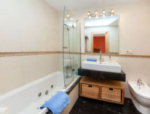 "La Torre", 5-Zimmer-Reihenhaus auf 3 Stockwerken. Wohn-/Esszimmer. Ausgang zur Terrasse, zum Schwimmbad. Küche (Backofen, Geschirrspüler, 4 Glaskeramikherd Platten, Mikrowelle, Tiefkühler, elektrische Kaffeemaschine). Sep. WC. Keine Heizmöglichkeit. Obergeschoss: 1 Zimmer mit 2 Betten (90 cm, Länge 190 cm) mit 1 franz. Bett (135 cm, Länge 190 cm). 1 Zimmer mit 1 franz. Bett (135 cm, Länge 190 cm), Bad/WC. Bad/WC. 2. Obergeschoss: 1 abgeschrägtes Zimmer mit 2 franz. Betten (90 cm, Länge 190 cm). Grosse Terrasse. Terrassenmöbel, Liegestühle, Loggia. Zur Verfügung: Waschmaschine, Bügeleisen, Kinderhochstuhl, Babybett, Haartrockner. Internet (Wireless LAN). Beim Haus. Bitte beachten: 1 Haustier/Hund erlaubt. TV nur ES. HUTG-055161 Eine Badewanne ist verfügbar. In dieser Unterkunft sind Haustier erlaubt, so fühlt sich auch ihr Vierbeiner pudelwohl. Ein Pool ist vorhanden. Ein privater Pool ist vorhanden.- Ausstattung