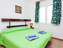4-Zimmer-Wohnung 80 m2 im 1. Stock. Komfortabel eingerichtet: Wohn-/Esszimmer mit Sat-TV (Flachbildschirm). Ausgang zur Terrasse. 1 Zimmer mit 1 franz. Bett (135 cm, Länge 190 cm). 1 Zimmer mit 1 franz. Bett (160 cm, Länge 190 cm), Waschbecken. 1 Zimmer mit 1 x 2 Etagenbetten (80 cm, Länge 190 cm), 1 franz. Bett (160 cm, Länge 200 cm). Ausgang zur Terrasse. Küche (Backofen, 4 Glaskeramikherd Platten, Toaster, Wasserkocher, elektrische Kaffeemaschine). 2 Duschen/WC. E-Heizung, Klimaanlage. Terrasse 10 m2, überdacht Terrasse 9 m2, überdacht. Terrassenmöbel. Zur Verfügung: Waschmaschine, Bügeleisen, Kinderhochstuhl, Babybett bis 2 Jahre (extra), Haartrockner. Internet (Wireless LAN, gratis). Parkplatz, Höhe 276 cm, Breite 460 cm. Bitte beachten: TV nur FR, DE. HUTG002984 Treten Sie ein und spüren die erfrischende Brise der Klimaanlage. Es hat eine Terrasse. Das Haus ist auch mit einem Babybett ausgestattet. Es hat ein Ofen.- Ausstattung