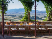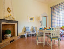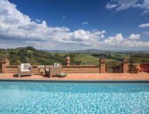 Die Villa befindet sich im Weiler Fabbrica, einem Dorf, das im Mittelalter von den Adelsfamilien des Großherzogtums Toskana erbaut wurde und das trotz der Tatsache, dass viele Jahrhunderte vergangen sind, keine Veränderungen erfahren hat, die seine Eigenschaften verfälscht haben . Die um 1800 im Jugendstil erbaute Villa überblickt eine herrliche Landschaft aus Weinbergen, Olivenbäumen und sanften Hügeln, die die Stadt Volterra umgeben. Villa "La Veduta", 150 m.ü.M.. Im Ortszentrum von Fabbrica, 6.6 km vom Zentrum von Peccioli, 25 km vom Zentrum von Volterra, 35 km vom Zentrum von San Gimignano, ruhige, sonnige Lage, 40 km vom Meer. Zur Alleinbenutzung: Terrassengarten (eingezäunt), Schwimmbad (12 x 4 m, 120 - 150 cm tief, saisonale Verfügbarkeit: 01.Mai. - 30.Okt.). Tischtennis, Terrasse, Gartenmöbel, Grill, Kinderspielplatz (Schaukel), Poolpflege durch den Besitzer/Gärtner. Heizung nur verfügbar von 01.11. bis 15.04.. Koch möglich (extra). Frühstück möglich (extra). Parkplatz auf dem Grundstück. Einkaufsgeschäft, Lebensmittelgeschäft 100 m, Supermarkt 800 m, Sandstrand "Marina di Cecina, Vada, Tirrenia" 40 km, Felsstrand "Castiglioncello" 50 km, Thermalbad "Casciana Terme" 22 km. Golfplatz (18 Loch) 14 km. Nahe gelegene Sehenswürdigkeiten: Lajatico 18 km, Castelfalfi 22 km, Pisa 50 km, Lucca 55 km, Bolgheri 59 km, Monteriggioni 60 km. Geeignet für Events. Es ist möglich einen Kochkurs zu buchen. Ob Profi oder Amateur, zögern Sie nicht und gehen Sie Ihren Rundschlag auf dem naheliegenden Golfplatz trainieren.Interior