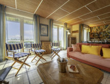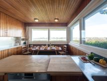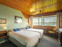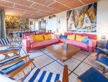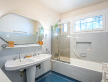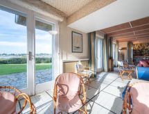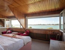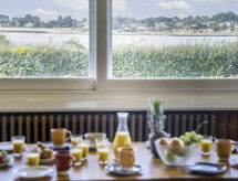 Leisure tennis court. Villa "La Villa Tribale", auf 2 Stockwerken. 10 m vom Meer, 150 m vom Strand. Zur Alleinbenutzung: Park 2 ha (eingezäunt). Tennis (1 x Hartbelag), Parkplatz (für 5 Autos). Supermarkt 3 km, Restaurant 2 km, Bar 2 km, Bäckerei 2 km, Café 2 km, Sandstrand "Kernevest" 900 m. Sporthafen 1.5 km, Golfplatz (18 Loch) 12 km, Segelschule 900 m, Wanderwege ab Haus 10 m. Nahe gelegene Sehenswürdigkeiten: La Trinité Sur Mer 2 km, Carnac et ses alignements 7 km, Presqu'île de Quiberon 15 km, Vannes 35 km, Belle ile en Mer, Houat, Hoedic. Wandergebiete: Le Golfe du Morbihan 30 km. Sportler können auf dem verfügbaren Tennisplatz ein Match austragen.Interior