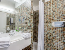 Residenz "Le Britannia", auf 5 Stockwerken. Im Ortszentrum von Carnac Plage, 20 m vom Meer, 20 m vom Strand. Zur Alleinbenutzung: Terrasse, Gartenmöbel. In der Anlage: Einstellraum für Fahrräder. Einkaufsgeschäft 150 m, Supermarkt 900 m, Bäckerei 150 m, Zentrum zu Fuss in 5 Minuten erreichbar, Sandstrand "Grande Plage de Carnac Plage", Hallenbad 800 m, Thermalbad "Thalassothérapie de Carnac" 800 m. Golfplatz (18 Loch) 15 km, Surfschule 8 km, Segelschule 1.5 km. Nahe gelegene Sehenswürdigkeiten: Les Alignements de Carnac 3 km, La Trinité sur Mer 4 km, Presqu'île de Quiberon 15 km, Auray 15 km, Vannes 35 km, Lorient 55 km. Wandergebiete: Le Golfe du Morbihan.Interior