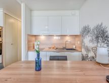 1-Zimmer-Studio 28 m2 im 1. Stock. Komfortabel und schön eingerichtet: Eingang mit 1 franz. Bett (1 x 140 cm, Länge 190 cm). Wohn-/Esszimmer mit 1 Diwanbett (140 cm, Länge 190 cm), TV (Flachbildschirm). Ausgang zur Terrasse. Kochnische (Backofen, Geschirrspüler, 2 Induktionskochplatten, Toaster, Wasserkocher, Mikrowelle, elektrische Kaffeemaschine, Kapseln für die Kaffeemaschine (Nespresso) extra). Dusche/WC. E-Heizung. Terrasse 9 m2. Terrassenmöbel. Panoramasicht auf das Meer. Zur Verfügung: Waschmaschine, Bügeleisen, Haartrockner. Internet (Wireless LAN, gratis). Garage Nr. 27. Bitte beachten: Nichtraucher-Unterkunft. Rauchmelder. Residenz. Beachten Sie bitte, das Rauchverbot gilt im gesamten Gebäude. Gewährt spektakulärer Aussicht auf das Meer. Es hat ein Geschirrspüler. Es hat ein Ofen.- Charakteristik des Mietobjekts