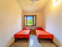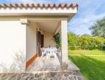 "Le Canne (TEO111)", 3-Zimmer-Wohnung 45 bis 60 m2. Zweckmässig eingerichtet: Wohn-/Schlafzimmer mit 1 Doppeldiwanbett, Esstisch und TV. 1 Zimmer mit 1 Doppelbett. 1 Zimmer mit 2 Betten. Kochnische (4 Flammen). Dusche/WC. Keine Heizmöglichkeit. Balkon oder Terrasse, kleiner Garten. Terrassenmöbel. Zur Verfügung: Waschmaschine, Kinderhochstuhl, Babybett (extra). Parkplatz beim Haus. Maximal 1 kleines Haustier/Hund erlaubt. IUN:E8289 Der Spielplatz, der für Kinder geeignet ist steht zur Verfügung. Das Haus ist auch mit einem Babybett ausgestattet. Eine Waschmaschine ist zum gebrauch vorhanden.- Ausstattung