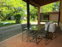 "Le Capanne I", 2-Zimmer-Wohnung 30 m2. Schön eingerichtet: Wohnzimmer mit 1 Doppeldiwanbett und Sat-TV. 1 Zimmer mit 2 Betten. Kochnische (4 Kochplatten, Wasserkocher, Mikrowelle, elektrische Kaffeemaschine). Dusche/Bidet/WC. Klimaanlage. Terrasse überdacht. Sitzplatz. Zur Verfügung: Internet (Wireless LAN, gratis). 1 Haustier/Hund erlaubt. Die Wohnung kann sich im Erdgeschoss oder im ersten Stock befinden. Einige Wohnungen mit Garten. WIFI innerhalb und außerhalb der Apartments verfügbar. Bietet seinen Gästen Halbpension an. Wir laden Sie gerne täglich zum Frühstück ein. Ein eindrucksvoller Kinderspielplatz befindet sich ebenfalls auf dem Anwesen. Damit es auch im Sommer angenehm kühl bleibt, verfügt dieses Ferienobjekt über eine Klimaanlage. Eine Terrasse ist verfügbar. Geeignet zum Grillen. Ein Internetanschluss ist vorhanden. Ein Tischtennistisch ist verfügbar.- Ausstattung