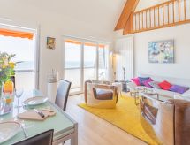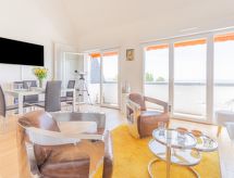 3-Zimmer-Wohnung 68 m2 im 4. Stock. Hell, schön und geschmackvoll eingerichtet: Eingang. Wohn-/Esszimmer mit Essecke und TV (Flachbildschirm). Ausgang zum Balkon. 1 Zimmer mit 1 Doppelbett (2 x 80 cm, Länge 200 cm). Kleine Küche (Backofen, Geschirrspüler, 3 Induktionskochplatten, Toaster, Wasserkocher, elektrische Kaffeemaschine). Dusche, sep. WC. Obergeschoss: 1 offenes Zimmer mit 1 franz. Bett (1 x 160 cm, Länge 200 cm), sep. WC und TV (Flachbildschirm), elektrischem Rollladen. Kleiner Balkon 4 m2, Westlage. Balkonmöbel. Sehr schöne Panoramasicht auf das Meer. Zur Verfügung: Bügeleisen. Internet (Wireless LAN, extra). Parkplatz (überdacht). Bitte beachten: Nichtraucher-Unterkunft. Rauchmelder. Residenz. Sie gelangen mit dem Aufzug zur Etage der Wohnung. Aussicht auf das Meer und Lage sind traumhaft. Es gibt ein Balkon. Ein überdachter Parkplatz ist vorhanden. Es gibt WLAN (Drahtloses lokales Netzwerk).- Charakteristik des Mietobjekts