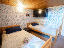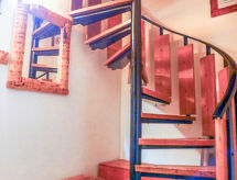 3-Zimmer-Wohnung 55 m2 auf 2 Stockwerken im 6. Stock. Eingang. Obergeschoss: (Wendeltreppe) Wohn-/Esszimmer mit 1 Ausziehbett (2 Pers. 2 x 80 cm, Länge 190 cm). 1 Zimmer mit 1 Doppelbett (160 cm, Länge 190 cm). 1 Zimmer mit 2 Betten (90 cm, Länge 190 cm), Dusche. Kochnische (4 Kochplatten, Backofen, Geschirrspüler, Mikrowelle). Bad, sep. WC. Südlage. Schöne Sicht auf die Berge. Zur Verfügung: Internet (Wireless LAN, extra). Bitte beachten: Rauchmelder. Residenz. Objekt mit Lift. Das Haus ist auch mit einem Internetanschluss ausgestattet.- Charakteristik des Mietobjekts