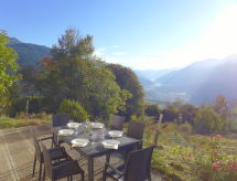 4-Zimmer-Reihenhaus 110 m2 auf 2 Stockwerken, Südlage. Geräumig und hell, renoviert im Jahre 2018, schön und modern eingerichtet: Wohn-/Esszimmer mit offenem Kamin und Kabel-TV. Ausgang zur Terrasse, Richtung Süden. 1 Doppelzimmer, Richtung Osten mit 1 Doppelbett (160 cm, Länge 200 cm). Wohnküche (Geschirrspüler, 4 Glaskeramikherd Platten, Toaster, Wasserkocher, Mikrowelle, Tiefkühler, elektrische Kaffeemaschine, Kapseln für die Kaffeemaschine (Delizio (Migros)) extra, Racletteofen, Fondue Set (Käse)) mit Esstisch. Ausgang zur Terrasse, Richtung Süden. Bad/WC. Heizung. Obergeschoss: 2 Doppelzimmer, Richtung Süden, jedes Zimmer mit 1 Doppelbett (160 cm, Länge 200 cm), Waschbecken. Sep. WC. Parkettböden. Terrasse 25 m2. Terrassenmöbel. Sehr schöne Panoramasicht auf die Berge, das Tal und die Landschaft. Zur Verfügung: Waschmaschine, Wäschetrockner, Haartrockner. Internet (Wireless LAN, gratis). Parkplatz (2 Autos) beim Haus, im Winter in 30 m. Bitte beachten: Nichtraucher-Haus. Maximal 2 Haustiere/Hunde erlaubt. Auf dem eingezäunten Grundstück vor dem Chalet, können sich möglicherweise Kühe befinden. Ein Wäschetrockner ist vorhanden.- Ausstattung