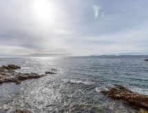 1-Zimmer-Studio 31 m2 im 2. Stock, Westlage. Hell, komfortabel und schön eingerichtet: Wohn-/Schlafzimmer mit 1 Diwanbett (90 cm, Länge 190 cm), 1 Doppeldiwanbett (1 x 160 cm, Länge 190 cm), TV (Flachbildschirm), Ventilator. Ausgang zur Loggia. Offene Küche (2 Kochplatten, Mini-Backofen, Geschirrspüler, Toaster, Wasserkocher, elektrische Kaffeemaschine, Kombinationsmikrowelle). Dusche/WC. E-Heizung. Sehr schöne Sicht auf das Meer. Zur Verfügung: Waschmaschine, Bügeleisen. Internet (Wireless LAN, extra). Bitte beachten: Kühlschrank ohne Gefrierfach. 1 Haustier/Hund erlaubt. Rauchmelder. Gerade nach einem erlebnisreichen Ferientag hilft ein kurzes Brausebad um sich zu erfrischen. Dank der verfügbaren Dusche ein wahres Vergnügen. Überrascht Sie mit einer herrlichen Aussicht aufs Meer. Informieren Sie sich im über den vorhandenen TV Apparat. Ob lokale Neuigkeiten oder internationale Nachrichten, mit dem Fernsehen sind sie stehts gut informiert. Es hat ein Internetanschluss.- Charakteristik des Mietobjekts