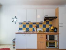 1-Zimmer-Studio 25 m2, im Erdgeschoss. Wohn-/Esszimmer mit TV (Flachbildschirm), E-Heizung und Klimaanlage. Kabine mit 1 franz. Bett (140 cm, Länge 190 cm). Kochnische (Mini-Backofen, 2 Induktionskochplatten, Toaster, Wasserkocher, Mikrowelle, Tiefkühler, elektrische Kaffeemaschine). Dusche/WC. Boiler (100 Liter). Zur Verfügung: Internet (Wireless LAN, extra). Bitte beachten: Wohnung auf Strassenseite. Kein Parkplatz. Rauchmelder. Damit es auch im Sommer angenehm kühl bleibt, verfügt dieses Ferienobjekt über eine Klimaanlage. Zur Verfügung steht ein Mikrowellengerät.- Ausstattung