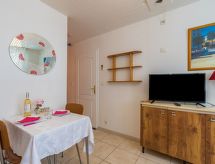 Appartementhaus "Le Grec", auf 2 Stockwerken. Im Ortszentrum von le Grau du Roi, 250 m vom Meer. Öffentliche Parkplätze 280 m. Einkaufsgeschäft 50 m, Supermarkt 400 m, Restaurant 200 m, Bäckerei 20 m, Bahnstation "Grau du roi" 450 m, Sandstrand "Rive gauche" 250 m. Surfen oder nicht Surfen ist hier keine Frage. Man muss es einfach versucht haben. Vor Ort bietet sich die Gelegenheit dazu.Interior