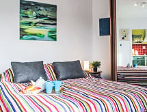 1-Zimmer-Wohnung 34 m2 im 5. Stock. Schön eingerichtet: Wohn-/Esszimmer mit 1 Doppeldiwanbett (140 cm, Länge 190 cm), TV (Flachbildschirm). Ausgang zum Balkon. Kochnische (Backofen, 4 Glaskeramikherd Platten, Mikrowelle). Bad/WC. E-Heizung. Kleiner Balkon 4 m2, Südwestlage. Zur Verfügung: Waschmaschine. Internet (Wireless LAN, gratis). Bitte beachten: Rauchmelder. 64122000151D2 Objekt mit Lift. Das Haus ist auch mit einem Balkon ausgestattet. Unabhängiger sind Sie mit der eigens vorhandenen Waschmaschine. Es hat ein drahtloses lokales Netzwerk (WLAN). Ein Ofen ist vorhanden.- Charakteristik des Mietobjekts