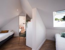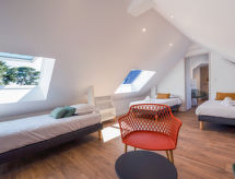 "Le Miln", 4-Zimmer-Wohnung 120 m2 im 1. Stock. Geräumig, vollständig renoviert im Jahre 2022, komfortabel eingerichtet: Wohn-/Esszimmer mit TV (Flachbildschirm). Ausgang zum Balkon. 1 Zimmer mit 1 franz. Bett (1 x 160 cm, Länge 200 cm). Offene Küche (Backofen, Geschirrspüler, 4 Glaskeramikherd Platten, Toaster, Wasserkocher, Mikrowelle, Tiefkühler, elektrische Kaffeemaschine). Ausgang zur Terrasse. Dusche, sep. WC. Obergeschoss: 1 Zimmer mit 3 Betten (90 cm, Länge 190 cm). Verbundenes Zimmer mit 2 Betten (90 cm, Länge 190 cm). Bad/WC. Balkon 30 m2, Nordlage und Westlage, grosse Terrasse 30 m2, Südlage. Terrassenmöbel, Liegestühle (2). Zur Verfügung: Waschmaschine, Haartrockner. Internet (Wireless LAN, gratis). Parkplatz (1 Auto) beim Haus. Bitte beachten: Wohnung auf Strassenseite. Rauchmelder. Plancha. Very central place in the city center of Carnac Plage, its shops and animations. Dank der Waschmaschine die Sie vorfinden, sind weniger Kleider zum mitschleppen.- Aktivitäten in der Nähe
