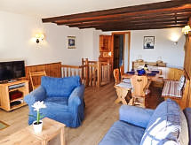 Chalet "Le Mont Blanc", auf 2 Stockwerken. 1.6 km vom Zentrum von Villars, ruhige, sonnige Lage, 500 m vom Skigebiet, an einer Strasse, im Grünen, Richtung Süden. Im Hause: Skiraum, Zentralheizung, Waschmaschine (zur Mitbenutzung, extra). Im Winter bitte Schneeketten mitbringen. Öffentliche Parkplätze. Einkaufsgeschäft 1.6 km, Lebensmittelgeschäft 800 m, Restaurant 1 km, Bushaltestelle 800 m, Bahnstation "Villars" 1.9 km, Thermalbad "Lavey-les-Bains" 19 km. Sporthafen 25 km, Golfplatz (18 Loch) 7 km, Tennishalle 2 km, Sportzentrum 2 km, Bergbahn 1.9 km, Gondelbahn, Skibushaltestelle 400 m, Skischule 1.8 km, Kinderskischule 2 km, Eisfeld 1.5 km, Kinderspielplatz 1 km. Bitte beachten: kein Fahrstuhl vorhanden. Der gratis Skibus fährt zum Skigebiet Villars. In der herrlichen Natur zwischen saftigen Almwiesen, rauschenden Wälder, umgeben von der eindrucksvollen Bergwelt lädt der Ort zum Wandern ein. Extra präparierte Langlauf Loipen befinden sich unmittelbar vor der Haustür. Gekonnt auf Kufen die Kurve kratzen ist eine eisige Verlockung auf der lokalen Eislaufbahn. Gastgeber, die sich über Besucher zum Snowboarden freuen, trifft man hier überall. Snowboard-Fun wird grossgeschrieben. Wer gerne durch verschneite Winterlandschaften schlittelt, gibt es hier bezaubernde Möglichkeiten für Schlittel-Begeisterte. Ob Profi oder Amateur, zögern Sie nicht und gehen Sie Ihren Rundschlag auf dem naheliegenden Golfplatz trainieren.Interior