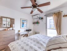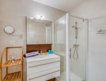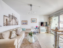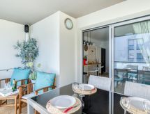 2-Zimmer-Wohnung 39 m2 im 3. Stock. Wohnzimmer mit 1 Doppeldiwanbett (1 x 140 cm, Länge 190 cm), TV, Flachbildschirm, Radio und elektrischem Rollladen. Ausgang zur Terrasse. 1 Zimmer mit 1 franz. Bett (2 x 80 cm, Länge 200 cm), Klimaanlage und elektrischem Rollladen. Offene Küche (Backofen, Geschirrspüler, 4 Induktionskochplatten, Toaster, Wasserkocher, Mikrowelle, Tiefkühler, elektrische Kaffeemaschine, Kapseln für die Kaffeemaschine (SENSEO) extra) mit Bar. Dusche, sep. WC. E-Heizung. Terrasse 10 m2. Terrassenmöbel. Seitliche Sicht auf den Garten und den Kanal. Zur Verfügung: Waschmaschine, Haartrockner. Internet (Wireless LAN, gratis). Garage Nr. 125, Höhe 200 cm, Breite 400 cm. Bitte beachten: Nichtraucher-Unterkunft. Rauchmelder. Residenz. Gerade nach einem erlebnisreichen Ferientag hilft ein kurzes Brausebad um sich zu erfrischen. Dank der verfügbaren Dusche ein wahres Vergnügen. Bequem mit dem Lift bis vor die Haustür.- Charakteristik des Mietobjekts