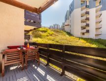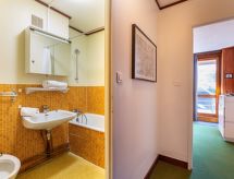 2-Zimmer-Wohnung 45 m2 im 2. Stock. Wohn-/Esszimmer mit 1 Doppeldiwanbett und TV. Ausgang zum Balkon. 1 Zimmer mit 1 Bett (80 cm), 1 x 2 Etagenbetten (80 cm). Ausgang zum Balkon. Eingang mit 2 Wandklappbetten (190 cm). Küche (Backofen, Geschirrspüler, 3 Glaskeramikherd Platten, Mikrowelle). Bad, sep. WC. Südlage. Zur Verfügung: Internet (Wireless LAN, gratis). Bitte beachten: Nichtraucher-Unterkunft. Rauchmelder. Eine Badewanne ist vorhanden. Beachten Sie bitte, das Rauchverbot gilt im gesamten Gebäude. Es gibt ein Babybett.- Ausstattung