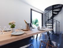 Modernes Einfamilienhaus "Le Rahic". Im Ort, 700 m vom Zentrum von Carnac Plage, 800 m vom Meer, 800 m vom Strand. Zur Alleinbenutzung: Garten (nicht eingezäunt). Im Hause: Einstellraum für Fahrräder. Supermarkt 1.2 km, Sandstrand "Grande Plage de Carnac" 800 m, Thermalbad "Thalassothérapie de Carnac" 1.5 km. Golfplatz (18 Loch) 15 km, Surfschule 8 km, Segelschule 2 km. Nahe gelegene Sehenswürdigkeiten: Les Alignements de Carnac 1 km, la Trinité sur Mer 4 km, Presqu'ile de Quiberon 15 km, Belle Ile en Mer, Houat, Hoedic, Vannes 35 m, Lorient 65 m. Wandergebiete: Le Golfe du Morbihan.Interior