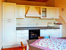 Auf Weingut "Il Pozzo Fiorito", umgeben von Feldern und Weinbergen. 5 Wohnungen in der Residenz. 100 m vom Zentrum von Cossombrato, 14 km vom Zentrum von Asti, 45 km vom Zentrum von Turin. Zur Mitbenutzung: Grundstück 1'200 m2 (eingezäunt), gepflegter Garten mit Rasen, Schwimmbad (8 x 4 m, 150 cm tief, saisonale Verfügbarkeit: 30.Apr. - 10.Okt.). Dusche/WC im Poolbereich, Aussendusche, Tischtennis, Pergola, Terrasse, Gartenmöbel, Grill. In der Anlage: Waschmaschine (zur Mitbenutzung, extra), Fahrräder vorhanden (extra). Parkplatz beim Haus auf dem Grundstück. Supermarkt 1 km, Bahnstation "Asti" 14 km. Ab Hof Verkauf von bäuerlichen Produkten. Bitte beachten: Der Besitzer wohnt auf dem gleichen Grundstück.Interior
