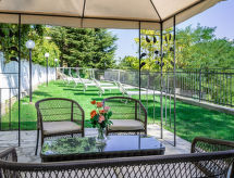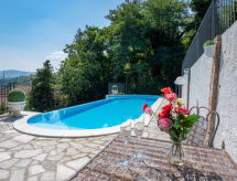 "Le Rose", 6-Zimmer-Haus 250 m2 auf 2 Stockwerken. Geschmackvoll eingerichtet: Wohnzimmer mit offenem Kamin (nur Deko). Küche (Backofen, Geschirrspüler, 4 Flammen, Mikrowelle, Tiefkühler, elektrische Kaffeemaschine) mit Esstisch. Dusche/WC. Obergeschoss: kleines Wohnzimmer. 4 Zimmer, jedes Zimmer mit 1 Doppelbett und TV. Bad/Dusche/WC, Whirlbadewanne. G-Heizung. Parkettböden. Abstellkammer. Zur Verfügung: Waschmaschine, Kinderhochstuhl, Babybett. Internet (Wireless LAN, gratis). Bitte beachten: Nichtraucher-Haus. CIR: 00616000005 Mit eigenem Whirlpool.,Nutzen Sie den Whirlpool. Eine Veranda ist vorhanden. Es gibt ein Babybett. Es gibt ein Parkplatz. Ein privater Pool ist verfügbar. Das Haus ist auch mit einem Internetanschluss ausgestattet. Es gibt WLAN (Drahtloses lokales Netzwerk). Ein Billardtisch ist verfügbar.- Ausstattung