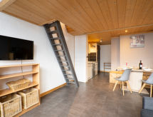 1-Zimmer-Studio 33 m2 auf 2 Stockwerken im 3. Stock. Geräumig, zweckmässig und schön eingerichtet: Wohn-/Esszimmer mit 1 Doppeldiwanbett (140 cm), TV (Flachbildschirm). Ausgang zum Balkon, Richtung Süden. Galerie mit 1 franz. Bett (1 x 140 cm). Kochnische im Eingang (Geschirrspüler, 3 Glaskeramikherd Platten, Mikrowelle). Dusche/WC. Kleiner Balkon, Südlage. Zur Verfügung: Kinderhochstuhl, Babybett bis 2 Jahre. Internet (Wireless LAN, gratis). Bitte beachten: Nichtraucher-Unterkunft. Rauchmelder. Residenz. Geniessen Sie Ihr Frühstück im angebundenen Restaurant. Objekt verfügt über einen Aufzug. Informieren Sie sich im über den vorhandenen TV Apparat. Ob lokale Neuigkeiten oder internationale Nachrichten, mit dem Fernsehen sind sie stehts gut informiert.- Charakteristik des Mietobjekts