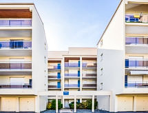 2-Zimmer-Wohnung 33 m2 im 2. Stock. Objekt geeignet für 2 Erwachsene + 2 Kinder. Wohn-/Esszimmer mit Flachbildschirm. Ausgang zum Balkon. 1 Zimmer mit 1 franz. Bett (1 x 140 cm, Länge 190 cm). Schlafnische mit 1 x 2 Etagenbetten (90 cm, Länge 190 cm). Kochnische (2 Kochplatten, Mikrowelle, elektrische Kaffeemaschine). Dusche, sep. WC. E-Heizung. Balkon 4 m2. Balkonmöbel. Seitliche Sicht auf das Meer. Zur Verfügung: Internet (Wireless LAN, extra). Parkplatz Nr. 90. Bitte beachten: Wohnung auf Strassenseite. Maximal 1 Haustier/Hund erlaubt. Rauchmelder. Ein Feriengenuss für Mensch und Tier. Hierbei handelt es sich um eine Hunde- und katzenfreundliche Ferienunterkunft. Das Ferienobjekt verfügt über einen Personenaufzug. Ein Mikrowellenofen ist auch vorhanden.- Charakteristik des Mietobjekts