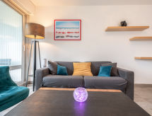 2-Zimmer-Wohnung 37 m2, im Erdgeschoss. Komfortabel eingerichtet: Salon mit 1 Doppeldiwanbett (1 x 140 cm, Länge 190 cm), TV (Flachbildschirm). Ausgang zum Balkon. 1 Zimmer mit 1 franz. Bett (1 x 140 cm, Länge 200 cm). Küche (Mini-Backofen, Geschirrspüler, 2 Glaskeramikherd Platten, elektrische Kaffeemaschine, Kombinationsmikrowelle). Dusche, sep. WC. E-Heizung. Kleiner Balkon 6 m2. Zur Verfügung: Waschmaschine. Internet (Wireless LAN, extra). Garage Nr. 6. Ein Balkon ist vorhanden. Eine Waschmaschine ist zum gebrauch vorhanden.- Charakteristik des Mietobjekts