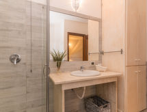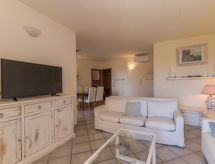 Schöne, gemütliche Ferienanlage "S'Abba e Sa Pedra", auf 2 Stockwerken. 80 Wohnungen in der Residenz. 2.5 km vom Zentrum von Golfo Aranci, 18 km vom Zentrum von Olbia, sonnige Lage am Hang, 300 m vom Meer, direkter Zugang zum Strand. Zur Mitbenutzung: Grundstück (eingezäunt), Wiese, Schwimmbad (200 m2, saisonale Verfügbarkeit: 01.Mai. - 31.Okt.). Aussendusche, Terrasse, Poolpflege durch den Besitzer/Gärtner. In der Anlage: Empfang. Öffentliche Parkplätze auf der Strasse. Supermarkt 2.5 km, Fähre "Olbia" 18 km, Sandstrand 500 m, Felsstrand 300 m (klein).Interior
