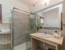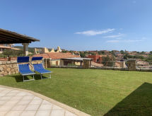 "Lentischio", 3-Zimmer-Wohnung 95 m2, im Erdgeschoss. Geschmackvoll und gemütlich eingerichtet: Wohn-/Esszimmer mit 1 Diwanbett, Sat-TV und Klimaanlage. Ausgang zur Terrasse. 1 Doppelzimmer mit Dusche/Bidet/WC. 1 Zimmer mit 1 Bett und 1 x 2 Etagenbetten. Küche (Backofen, Geschirrspüler, 4 Flammen, Mikrowelle). Dusche/Bidet/WC. E-Heizung, Klimaanlage (extra). Terrasse 30 m2 teilweise überdacht, Garten 75 m2, Rasen. Terrassenmöbel, Liegestühle (2). Herrliche Sicht auf das Meer. Zur Verfügung: Waschmaschine, Bügeleisen, Kinderhochstuhl, Babybett (extra), Haartrockner. Parkplatz (überdacht). IUN:E2141 Mit eingezäuntem Grundstück. Gewährt spektakulärer Aussicht auf das Meer. Damit es auch im Sommer angenehm kühl bleibt, verfügt dieses Ferienobjekt über eine Klimaanlage. Ein überdachter Parkplatz ist verfügbar. Ein Pool ist vorhanden. Eine Waschmaschine ist zum gebrauch vorhanden.- Ausstattung