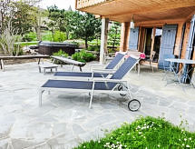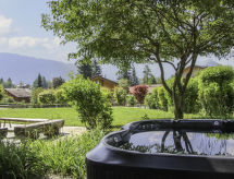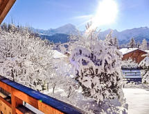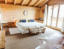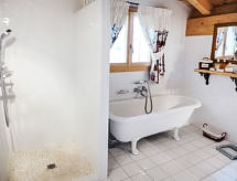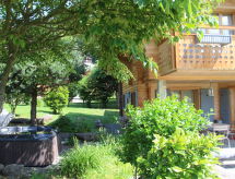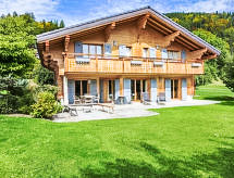"Chalet Les 3 Soeurs", 5-Zimmer-Chalet 180 m2, Südlage. Geräumig und hell, sehr schön und geschmackvoll eingerichtet: grosses Wohn-/Esszimmer mit offenem Kamin und TV (Flachbildschirm). Ausgang zum Garten, zur Terrasse, Richtung Süden. Grosse, offene Küche (Backofen, Geschirrspüler, 4 Induktionskochplatten, Tiefkühler, elektrische Kaffeemaschine, Kapseln für die Kaffeemaschine (Nespresso), Dampfgarer) mit Bar. Ausgang zur Terrasse. Sep. WC. Obergeschoss: 1 abgeschrägtes Zimmer mit begehbarer Kleiderschrank mit 2 Betten (90 cm), Bad/Dusche/WC und TV (Flachbildschirm). Ausgang zum Balkon, Richtung Süden. 1 abgeschrägtes Kinderzimmer mit 3 Betten (90 cm). Ausgang zum Balkon, Richtung Süden. 1 abgeschrägtes Zimmer mit begehbarer Kleiderschrank mit 1 franz. Bett (160 cm), Bad/WC. 1 Zimmer mit 2 Betten (90 cm). Dusche/WC. Grosser Balkon 20 m2, Südlage, grosser Garten 900 m2, Südlage. Terrassenmöbel, Gartengrill, Liegestühle (4). Sehr schöne Panoramasicht auf die Berge. Zur Verfügung: Waschmaschine, Wäschetrockner, Kinderhochstuhl, Babybett bis 2 Jahre, Holz (extra). Internet (Wireless LAN, gratis). Bitte beachten: Nichtraucher-Haus. In unserem Garten bietet sich Ihnen viel Platz für Entspannung und Erholung. Mit eigenem Whirlpool.,Nutzen Sie den Whirlpool. Es hat ein Babybett. Es hat ein überdachter Parkplatz. Ein Internetanschluss ist vorhanden. Es hat ein Wäschetrockner. Mit Reinigung. Das Haus ist auch mit einem Ofen ausgestattet.- Charakteristik des Mietobjekts