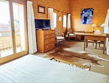Arveyes 1 km von Villars: Sehr schönes, gemütliches, sehr komfortables Chalet "Les 3 Soeurs", auf 2 Stockwerken, umgeben von Wiesen. 1.5 km vom Zentrum von Villars, ruhige, sonnige Lage in einem Wohnquartier, Richtung Süden. Zur Alleinbenutzung: grosser, schöner, gepflegter Garten 1'200 m2 mit Rasen und Pflanzen. Sprudelbad, Terrasse, Gartenmöbel, Grill. Im Hause: Zentralheizung, Waschmaschine, Wäschetrockner. Zur Verfügung: Kinderfahrräder (1), Kinderbob (1). Handtuchwechsel (zusätzlich extra). Wohnungsreinigung möglich (extra). Im Winter bitte Schneeketten mitbringen. Parkplatz (für 2 Autos), Einzelgarage. Supermarkt 1.5 km, Bäckerei 1.5 km, Zentrum zu Fuss in 20 Minuten erreichbar, Bahnstation "Arveyes" 450 m, Hallenbad 1.9 km, Thermalbad "Lavey-les-Bains" 19 km. Sporthafen 25 km, Golfplatz (18 Loch) 9 km, Tennishalle 2.7 km, Sportzentrum 2.7 km, Bergbahn 1.5 km, Skibushaltestelle 450 m, Skischule 1.5 km, Kinderskischule 1.8 km, Eisfeld 1.9 km. Der gratis Skibus fährt zum Skigebiet de Villars. Die Nachbarschaft ist sehr lärmempfindlich. Ruhe und gutes Benehmen wird erwartet. Für besonders Naturverbundene ist Langlauf, Skiwandern und Nordic-Cruising-Ski eine fabelhafte Alternative. Nutzen Sie die Gunst um diese sportliche Fortbewegung im Schnee. In der Region Villars gibt es eine Eisbahn, in denen man die Fahrt auf Kufen geniessen kann. Innmitten dieses beliebten Wintersportgebiets können Skifahrer und Snowboarder unzählige Abfahrtskilometer auf bestens präparierte Pisten befahren. Gastgeber, die sich über Besucher zum Snowboarden freuen, trifft man hier überall. Snowboard-Fun wird grossgeschrieben. Mit einem Schlitten, In unmittelbarer Nähe folgt schon der erste Adrenalinschub. Schlittelbegeisterte sausen einer unvergesslichen Abfahrt entgegen.Interior