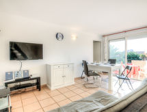 3-Zimmer-Maisonette-Wohnung 45 m2 im 1. Stock, Südostlage. Objekt geeignet für 2 Erwachsene + 2 Kinder. Hell, renoviert im Jahre 2015, komfortabel und schön eingerichtet: Wohn-/Esszimmer 23 m2 mit TV (Flachbildschirm). Ausgang zur Terrasse. 1 Zimmer mit 1 x 2 Etagenbetten (90 cm, Länge 190 cm). Offene Küche (Mikrowelle, Tiefkühler, elektrische Kaffeemaschine). Sep. WC. E-Heizung. Obergeschoss: 1 Zimmer mit 1 franz. Bett (160 cm, Länge 200 cm). Ausgang zur Terrasse. Bad/WC. 2 Terrassen, Südlage. Balkonmöbel. Schöne Sicht auf das Schwimmbad. Zur Verfügung: Waschmaschine. Internet (Wireless LAN, gratis). Parkplatz Nr. 23. Bitte beachten: geeignet für Familien. Nichtraucher-Unterkunft. Maximal 1 Haustier/Hund erlaubt. Rauchmelder. Sehr schönes Solarium im Obergeschoss mit Panoramablick und Meerblick ca. 200 m entfernt. Residenz. Ein Parkplatz ist vorhanden. Ein Pool ist vorhanden.- Charakteristik des Mietobjekts