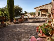7-Zimmer-Villa 290 m2 auf 2 Stockwerken. Geräumig, komfortabel und geschmackvoll eingerichtet: Eingang. Grosses Wohnzimmer mit offenem Kamin, Sat-TV, CD und DVD. Ausgang zur Terrasse. Esszimmer. Wohn-/Schlafzimmer mit 1 Doppeldiwanbett, Küchenblock, Bar und Sat-TV. Ausgang zur Terrasse. 3 Zimmer, jedes Zimmer mit 1 franz. Bett (140 cm). Küche (Backofen, Geschirrspüler, 4 Induktionskochplatten, Mikrowelle, elektrische Kaffeemaschine) mit Esstisch. Ausgang zur Terrasse. Bad, Dusche/WC, sep. WC, Doppelwaschbecken. Obergeschoss: 1 Zimmer mit 1 franz. Bett (140 cm), Bad und sep. WC. Ausgang zum Balkon. Balkon 8 m2, Terrasse 70 m2 teilweise überdacht, Terrasse 50 m2. Terrassenmöbel, Gartengrill, Liegestühle (8). Zur Verfügung: Waschmaschine, Bügeleisen. Internet (Wireless LAN, gratis). Bitte beachten: Nichtraucher-Haus. 2 Haustiere/Hunde erlaubt. Rauchmelder. Auf dem Grundstück befinden sich das Haupthaus und ein Nebenhaus, ohne interne Verbindung. In dem Nebenhaus : Wohnzimmer mit Sofa / Schlafsofa, Küche ( 4 Induktionsplatten, Ofen, Mikrowelle, Geschirrspüler, Kühlschrank, Kaffemaschine, Toaster), 2 Schlafzimmer, Dusche / WC, Doppelwaschbecken. Bei Belegung mit weniger Personen als der maximalen Personenzahl stehen nicht alle Schlafzimmer zur Verfügung. Der Eigentümer untersagt das Rauchen in dem Gebäude. Ein Ort für Erholungsurlaube zum Sonnenbaden und Lesen im Garten. Ein privater Pool ist verfügbar. Es hat ein DVD Spieler.- Charakteristik des Mietobjekts