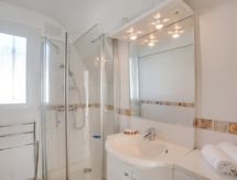 4-Zimmer-Doppelhaushälfte 77 m2 auf 2 Stockwerken. Wohn-/Esszimmer mit TV (Flachbildschirm), Radio. Ausgang zur Terrasse. Küche (4 Kochplatten, Backofen, Geschirrspüler, Mikrowelle, Tiefkühler). Sep. WC. Obergeschoss: 2 Zimmer, jedes Zimmer mit 1 franz. Bett (140 cm). 1 Zimmer mit 1 Bett (100 cm). Dusche, sep. WC. G-Heizung. Kleine Terrasse 10 m2, Gartensitzplatz. Terrassenmöbel, Liegestühle (2). Zur Verfügung: Waschmaschine, Wäschetrockner. Internet (Wireless LAN, extra). Parkplatz Nr. 7. Bitte beachten: TV nur FR. Rauchmelder. Gerade nach einem erlebnisreichen Ferientag hilft ein kurzes Brausebad um sich zu erfrischen. Dank der verfügbaren Dusche ein wahres Vergnügen. Das Haus ist auch mit einem Wäschetrockner ausgestattet.- Ausstattung