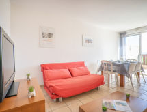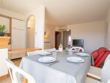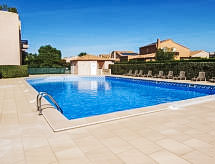 3-Zimmer-Wohnung 65 m2 auf 2 Stockwerken im 2. Stock. Schön eingerichtet: Wohn-/Esszimmer mit 1 Doppeldiwanbett (140 cm, Länge 190 cm), TV (Flachbildschirm). Ausgang zur Terrasse. 1 Zimmer mit 1 franz. Bett (160 cm, Länge 190 cm). Ausgang zur Terrasse. 1 Zimmer mit 2 Betten (90 cm, Länge 190 cm). Offene Küche (Backofen, Geschirrspüler, 4 Glaskeramikherd Platten, Mikrowelle, elektrische Kaffeemaschine). Bad/WC, Dusche/WC. Klimaanlage. Terrasse 12 m2, Südlage, kleine Terrasse, Nordlage. Terrassenmöbel. Zur Verfügung: Waschmaschine. Internet (Wireless LAN, extra). Garage Nr. 15, Höhe 200 cm, Breite 250 cm. Bitte beachten: Nichtraucher-Unterkunft. Maximal 1 Haustier/Hund erlaubt. Rauchmelder. Im Obergeschoss: Sonnenterrasse, 25 m2. Residenz. Treten Sie ein und spüren die erfrischende Brise der Klimaanlage. Es hat ein Pool.- Charakteristik des Mietobjekts