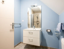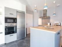 Einfamilienhaus "Les Goelettes", auf 2 Stockwerken, Baujahr 2017. Im Ort, 1.5 km vom Zentrum von Quiberon, 350 m vom Meer, 1 km vom Strand. Parkplatz auf dem Grundstück. Supermarkt 500 m, Sandstrand "plage de Saint Julien" 1 km, Thermalbad "Thalassothérapie de Quiberon" 3 km. Jacht-Hafen 2.5 km, Golfplatz (9 Loch) 2.5 km, Segelschule 1.7 km.Interior