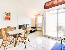 Residenz "Les Goelettes", auf 3 Stockwerken. Im Ort, 3.7 km vom Zentrum von Saint Cyprien Port, 150 m vom Meer, 100 m vom Strand, direkter Zugang zum Strand. Zur Mitbenutzung: Garten (eingezäunt), Schwimmbad (25 x 12 m, 120 - 220 cm tief, saisonale Verfügbarkeit: 15.Jun. - 15.Sep.). Kinderbecken. Im Hause: Fahrstuhl. Einkaufsgeschäft 2 km, Lebensmittelgeschäft 100 m, Supermarkt 3 km, Restaurant 900 m, Bahnstation "Elne" 8 km, Kieselstrand "Plage Sud" 100 m. Sporthafen 3.5 km, Golfplatz (27 Loch) 7 km, Segelschule 3.3 km, Minigolf 5.5 km, Reitstall 3.3 km, Sportzentrum 2 km. Nahe gelegene Sehenswürdigkeiten: Aqualand 1.7 km. Bitte beachten: Weitere Unterkünfte sind buchbar. Eine außerordentliche Gegend wo man gut reiten kann. Pferdesportfreunde sind hier gut aufgehoben.Interior