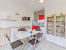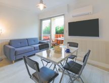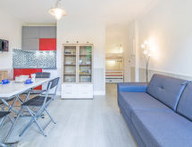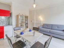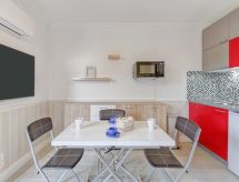 1-Zimmer-Studio 21 m2, im erhöhten Erdgeschoss. Hell, vollständig renoviert im Jahre 2019, komfortabel und gemütlich eingerichtet: Wohn-/Esszimmer mit 1 Doppeldiwanbett (140 cm, Länge 190 cm), TV (Flachbildschirm). Ausgang zum Balkon. Eingang mit 1 x 2 Etagenbetten (80 cm, Länge 190 cm). Offene Küche (2 Induktionskochplatten, Toaster, Wasserkocher, Mikrowelle, elektrische Kaffeemaschine). Dusche, sep. WC. Klimaanlage. Balkon 5 m2. Balkonmöbel. Eingeschränkte Sicht auf das Meer. Zur Verfügung: Waschmaschine. Internet (Wireless LAN, extra). Parkplatz Nr. 24. Bitte beachten: Kühlschrank ohne Gefrierfach. TV nur FR. Rauchmelder. Residenz.- Charakteristik des Mietobjekts