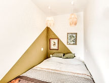 1-Zimmer-Wohnung 28 m2 im 1. Stock. Renoviert im Jahre 2017, schön eingerichtet: Wohn-/Esszimmer mit Panoramafenster mit 1 franz. Bett (1 x 140 cm, Länge 190 cm), TV (Flachbildschirm), Klimaanlage und elektrischem Rollladen. Ausgang zur Terrasse. Offene Küche (Backofen, 3 Induktionskochplatten, Toaster, Wasserkocher, Mikrowelle, elektrische Kaffeemaschine). Dusche/WC. Terrasse 6 m2. Terrassenmöbel. Zur Verfügung: Haartrockner. Internet (Wireless LAN, gratis). Parkplatz Nr. 15. Bitte beachten: Kühlschrank ohne Gefrierfach. TV nur FR. Rauchmelder. Residenz. Mit eingezäuntem Grundstück. Eine Terrasse ist vorhanden. Es hat ein Babybett. Informieren Sie sich im über den vorhandenen TV Apparat. Ob lokale Neuigkeiten oder internationale Nachrichten, mit dem Fernsehen sind sie stehts gut informiert.- Charakteristik des Mietobjekts