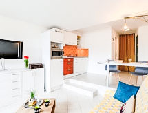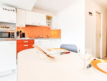Deauville: Residenz "Les Marinas". Im Ortsteil Port Deauville, 800 m vom Zentrum, 500 m vom Meer, 500 m vom Strand. In der Anlage: Fahrstuhl, Einstellraum für Fahrräder. (20 Stufen). Öffentliche Parkplätze. Einkaufsgeschäft, Lebensmittelgeschäft 650 m, Supermarkt 950 m, Restaurant 650 m, Bushaltestelle 400 m, Bahnstation "Deauville-Trouville" 1.2 km, Hallenbad 1.1 km, Thermalbad "Deauville" 1.1 km. Golfplatz 4.1 km, Tennis, Reitstall 750 m. Nahe gelegene Sehenswürdigkeiten: Centre International Deauville - CID 900 m, Hippodrome Deauville-La Touques 1.3 km, Mémorial de Caen 55 km, Plage du débarquement d'Arromanches 87 km. Bitte beachten: Die Schlüsselübergabe findet bei der Agentur Interhome in Deauville statt. In diesem Haus sind weitere Ferienwohnungen mietbar.Interior