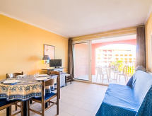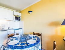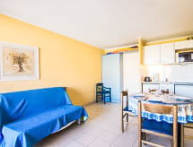 2-Zimmer-Wohnung 33 m2 im 2. Stock. Wohn-/Esszimmer mit 1 Doppeldiwanbett (140 cm, Länge 190 cm), TV (Flachbildschirm). Ausgang zur Terrasse. 1 Zimmer, Fenster zum Hof mit 2 Betten (90 cm, Länge 190 cm). Kochnische (Geschirrspüler, 4 Glaskeramikherd Platten, Mikrowelle, elektrische Kaffeemaschine). Bad, sep. WC. Terrasse 8 m2. Terrassenmöbel. Sicht auf das Meer und das Schwimmbad. Zur Verfügung: Bügeleisen. Internet (Wireless LAN, extra). Parkplatz Nr. 165. Bitte beachten: Rauchmelder. 83065000126P2 Residenz. Die Entspannung und das Lebensgefühl im Garten sind im Urlaub unverzichtbar. Überdies werden sie verwöhnt mit einem freien Blick auf das Meer. Auf dem Spielplatz können sich die Kinder austoben. Ein Kinderbecken ist vorhanden. Ein Internetanschluss ist verfügbar. Das Haus ist auch mit einem drahtlosen lokalen Netzwerk (WLAN) ausgestattet. Es hat ein Tischtennistisch.- Charakteristik des Mietobjekts