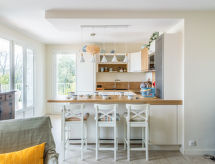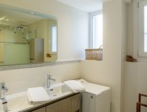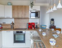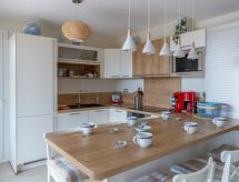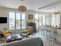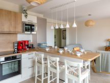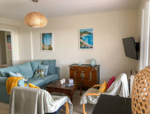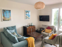 4-Zimmer-Wohnung 75 m2 im 2. Stock. Vollständig renoviert im Jahre 2020, komfortabel und schön eingerichtet: Wohn-/Esszimmer mit TV (Flachbildschirm), Klimaanlage. Ausgang zur Terrasse. 1 Zimmer mit 1 franz. Bett (140 cm, Länge 200 cm), Ventilator. 1 Zimmer mit 1 franz. Bett (140 cm, Länge 190 cm), Ventilator. 1 Zimmer mit 1 x 2 Etagenbetten (90 cm, Länge 190 cm), Ventilator. Offene Küche (Backofen, Geschirrspüler, 3 Induktionskochplatten, Toaster, Mikrowelle, Tiefkühler, elektrische Kaffeemaschine). Ausgang zur Terrasse. Dusche, sep. WC, Doppelwaschbecken. Warmluftheizung. Terrasse 22 m2. Terrassenmöbel. Zur Verfügung: Waschmaschine. Internet (Wireless LAN, gratis). Parkplatz (1 Auto). Bitte beachten: Nichtraucher-Unterkunft. TV nur FR. Rauchmelder. 831120004532P Residenz. Eine Terrasse ist vorhanden. Sollte das Wetter einmal nicht mitspielen, ist auch ein Fernseher vorhanden. Ein Ofen ist verfügbar.- Charakteristik des Mietobjekts