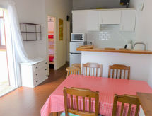 2-Zimmer-Reihenhaus 32 m2. Wohn-/Esszimmer mit TV. Schlafnische mit 1 x 2 Etagenbetten. 1 Zimmer mit 1 franz. Bett. Kochnische (2 Kochplatten, Backofen, Geschirrspüler). Dusche, sep. WC. Keine Heizmöglichkeit. Terrasse, Südostlage, Gartensitzplatz. Terrassenmöbel. Zur Verfügung: Waschmaschine. Internet (Wireless LAN, extra). Parkplatz Nr. 89. Bitte beachten: Rauchmelder. Residenz. Eine Veranda ist vorhanden. Informieren Sie sich im über den vorhandenen TV Apparat. Ob lokale Neuigkeiten oder internationale Nachrichten, mit dem Fernsehen sind sie stehts gut informiert.- Charakteristik des Mietobjekts